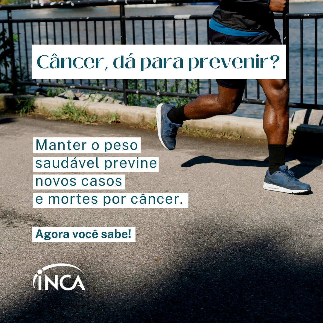 Manter o peso saudável ajuda a prevenir pelo menos 12 tipos de câncer. Ter uma alimentação saudável baseada em alimentos in natura e minimamente processados e ser fisicamente ativo contribuem para a manutenção do peso corporal adequado. Para mais informações, acesse: www.inca.gov.br/campanhas/prevencao/2022/cancer-da-para-prevenir
